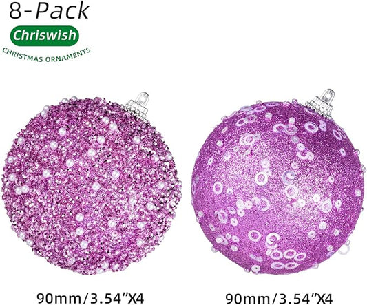 8CT Christmas Ball Ornaments, Purple Christmas Ball Decorations Shatterproof Plastic Hanging Pearl Balls for Holiday Party(90mm/3.54")