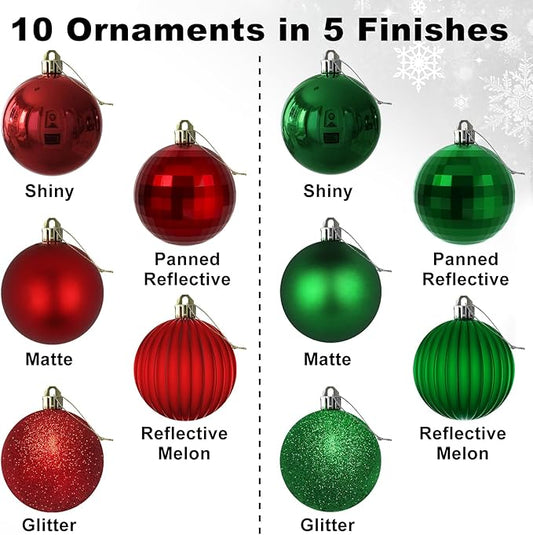 Red & Green 3.2" Large Christmas Balls - Christmas Tree Decoration Ornaments Shatterproof Hanging Balls for Birthday Halloween Holiday Wedding Decorations Set of 10pcs