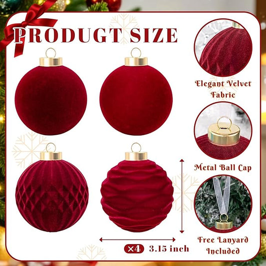 Festiva Christmas Tree Ornaments Velvet Balls - 12 Pcs Burgundy Red Shatterproof Christmas Tree Ornaments Velvet Balls, for Xmas Wedding Party Holiday Decorations (Gift Box)