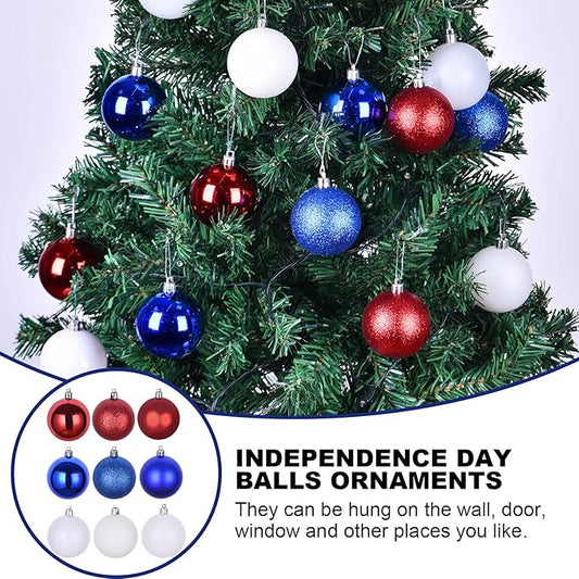 24ct Christmas Ball Ornaments, Shatterproof Christmas Tree Decorations, Perfect Hanging Ball for Indoor/Outdoor Holiday Party Decor (Red, Blue & White, 2.36'')