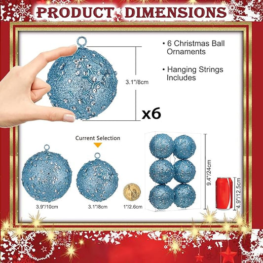 3.15" Large Christmas Balls Ornaments 6 Pcs Shatterproof Big Grey Blue Christmas Ornaments for Xmas Tree Bulk Glitter Big Xmas Tree Ornament for Trees Halloween Holiday Wedding Party Decoration