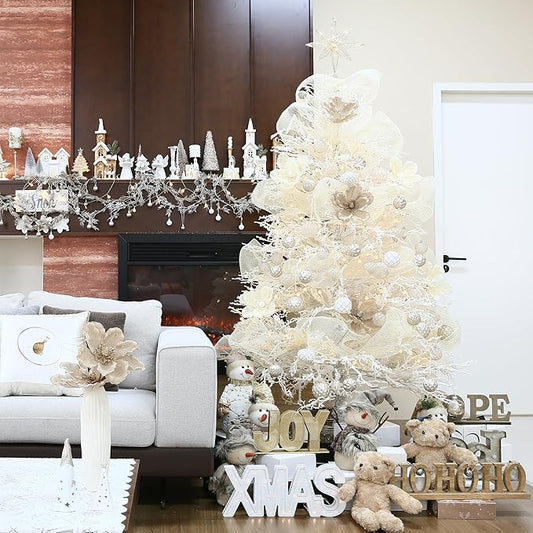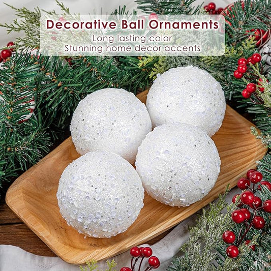 4" Large Christmas Balls Ornaments 6 Pcs Shatterproof Big White Christmas Ornaments for Tree Bulk Glitter Big Xmas Tree Ornament for Xmas Halloween Holiday Wedding Party Decoration