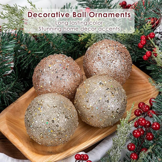 4" Large Christmas Balls Ornaments 6 Pcs Shatterproof Big Rose Gold Christmas Ornaments for Tree Glitter Big Xmas Tree Ornament for Xmas Halloween Holiday Wedding Party Decoration