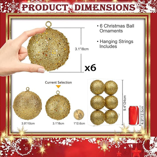 3.15" Large Christmas Balls Ornaments 6 Pcs Shatterproof Big Gold Christmas Ornaments for Xmas Tree Bulk Glitter Big Xmas Tree Ornament for Trees Halloween Holiday Wedding Party Decoration
