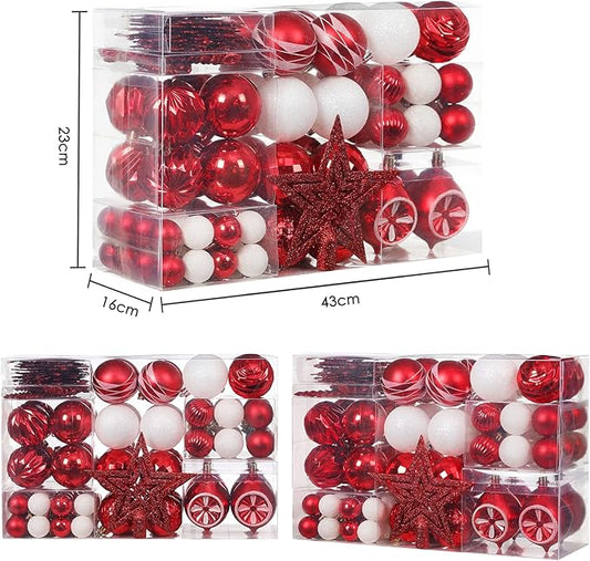 XmasExp 99-Pack Christmas Ball Ornaments Assorted Shatterproof Christmas Tree Decorations with Hand-held Gift Package for Xmas Tree,Home,Party (Red)