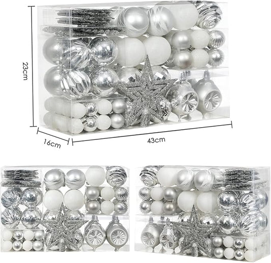 XmasExp 99-Pack Christmas Ball Ornaments Assorted Shatterproof Christmas Tree Decorations with Hand-held Gift Package for Xmas Tree,Home,Party(Silver-White)