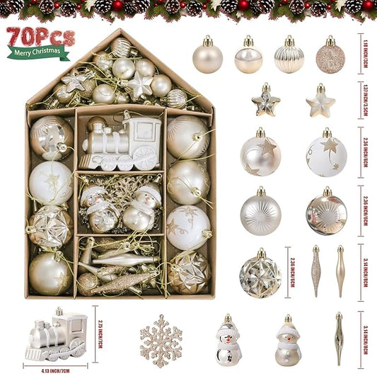 Christmas Ornaments Set,48Pcs Shatterproof Christmas Tree Ornaments Balls,Versatile Hanging Christmas Balls Ornaments,for XmasTrees,Wreath Garland,Holiday Party, Home Decor(White Gold)