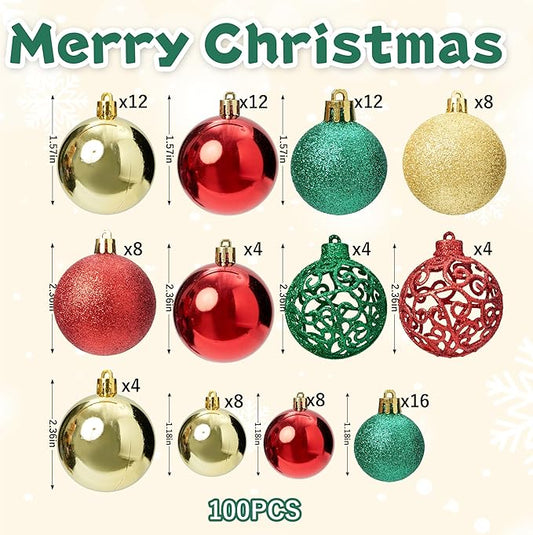 100-Pack Christmas Ball Ornaments for Tree,Shatterproof Plastic Holiday Baubles Set in Assorted Sizes and Finishes, Christmas Tree Decorations for Home, Office, Party, Indoor Outdoor Use
