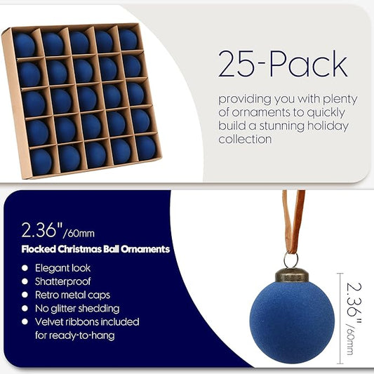 Sea Team 25-Pack Flocked Velvet Christmas Tree Ball Ornaments Set, Hanging Velour Baubles, Shatterproof Plastic Decorations for Xmas Tree, Wreath, Garland, 60mm/2.36 Inches, Royal Blue