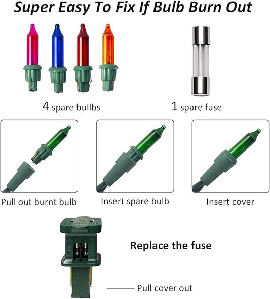 Dazzle Bright 100 LED C6 33 FT Waterproof Connectable Green Wire Fairy Lights, 8 Modes Christmas String Lights for Indoor Outdoor Home Garden Yard Xmas Tree Decorations (Blue)