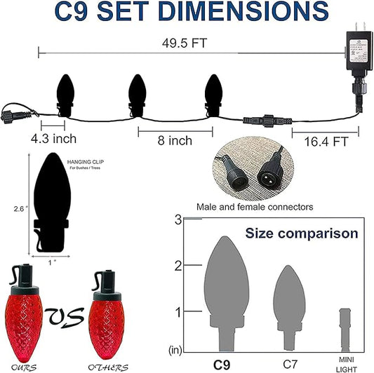 Dazzle Bright C9 Christmas Lights Outdoor, 50 LED 33ft Waterproof Green Wire String Lights, Indoor Outdoor Fairy Lights for Christmas Tree Xmas Yard Party Wedding House Decorations (Warm White)