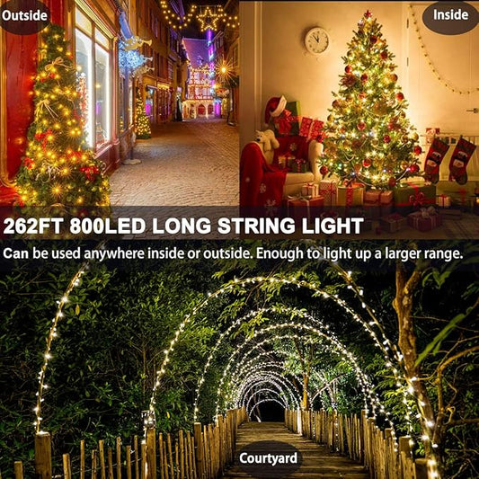 Decute 800LED 272ft Christmas String Lights UL Certified 8 Modes, Waterproof Outdoor Indoor Twinkle Starry Light for Christmas Tree Patio Garden Party Decor Warm White