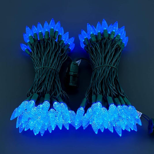 YULETIME Blue One-Piece C6 Strawberry Christmas Lights 140 Count 71 Feet, 2 Sets 70 LED 35.5 ft High Waterproof UL Certified String Light (Blue)