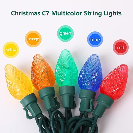 C7 LED Christmas String Lights, 25.16FT 50 LED Connectable Outdoor & Indoor Decorative Light Strand, Multicolor Xmas Holiday Lights for House, Christmas Tree, Patio, Party Decoration