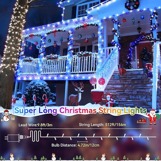 Extra Long Christmas Decorative Outdoor String Light 197 Feet 600LED 8 Modes Indoor Lights with Timer, Outdoor Indoor Fairy Lights Christmas Tree Patio Garden Holiday Warm White