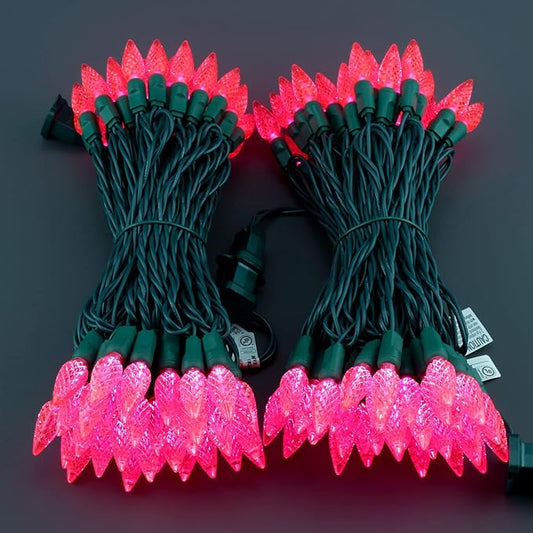YULETIME Red and Green One-Piece C6 Strawberry Christmas Lights 140 Count 71 Feet, 2 Sets 70 LED 35.5 ft High Waterproof UL Certified String Light (Red & Green)