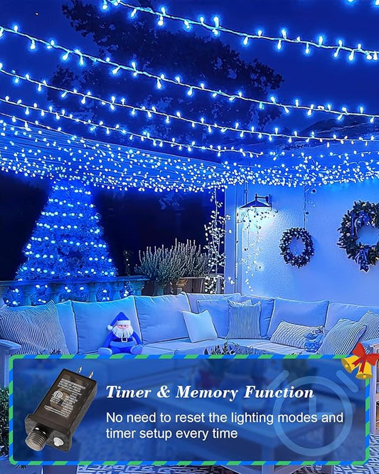 KNONEW 403FT 1000 LED Christmas Lights Outdoor String Light with 8 Modes and Timer Memory Waterproof Fairy Lights Decorations for Xmas Tree Yard Wedding Backdrop Decor(Blue and White)