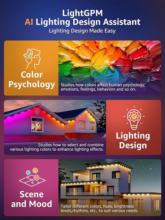 Lepro E1 AI Permanent Outdoor Lights APP Control, 50ft 30 LED Smart RGB+IC+Warm/Cool White House Eave Light for Halloween Christmas, Alexa Google Enabled, 2.4 GHz WiFi/Bluetooth, NO Remote Controller