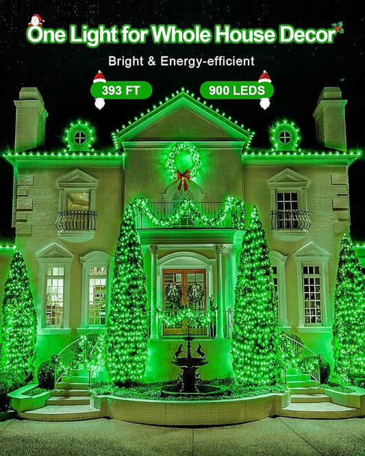 355 FT 900 LED Green Christmas Lights, Extra Long Outdoor String Lights Waterproof, Timer & Memory, 8 Modes Dimmable Plug in Fairy for Outside Tree Wedding Patry