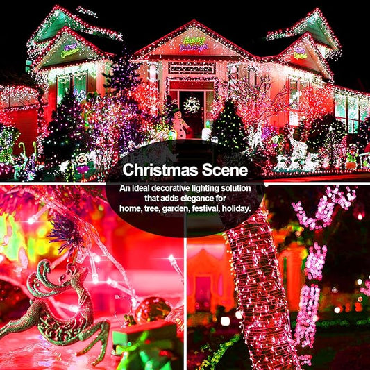 XURISEN Christmas Lights Outdoor 197FT 500 LED Green Wire String Lights 8 Modes with Timer Memory Waterproof Fairy Light Plug in for Xmas Tree Wedding Yard Party Holiday Decorations(Red+Green+White)