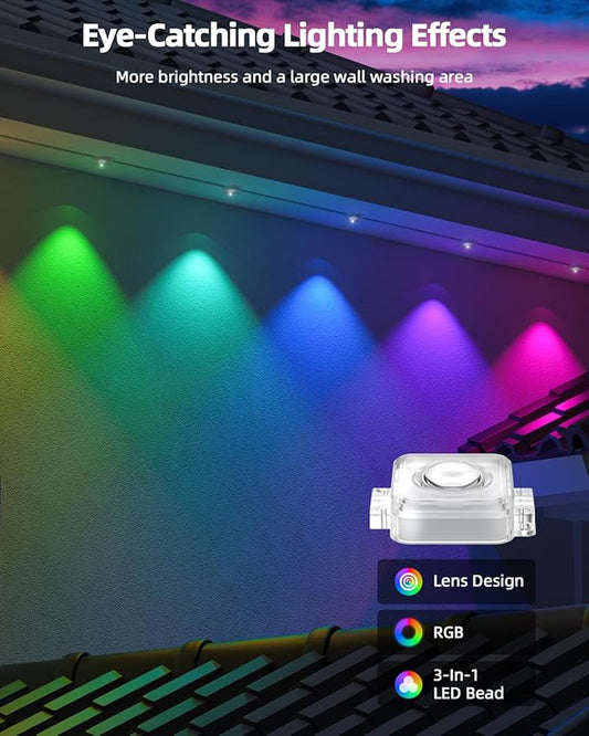 REYLAX 50FT Permanent Outdoor Lights with 30 LED Lights, RGB+IC Eaves Lights, IP67 Waterproof, Multi Scenes for Outdoor Christmas Holidays Decor, Works with APP & Remote Control, White