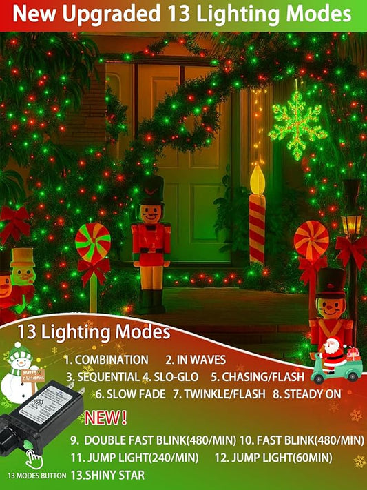 2 Pack Christmas String Lights Indoor Outdoor, Super Bright 66FT 200 LED String Lights Waterproof, 13 Modes Twinkle Xmas Lights with Timer for Christmas Tree Decorations (Red and Green)