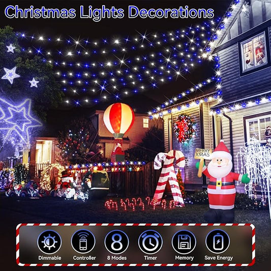 Hezbjiti 2 Pack 1000 LED 403 FT Christmas String Lights Outdoor, 8 Lighting Modes IP44 Waterproof Fairy Lights with Timer and Dimmable Function for Party Tree Decorations (Blue+White, Clear Wire)