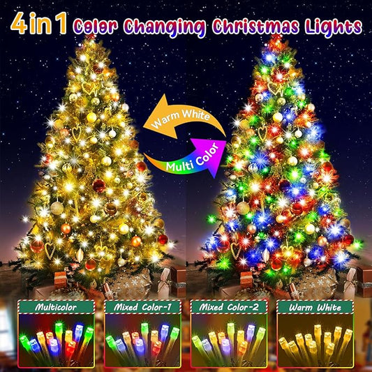 Hezbjiti 337FT 720LED Color Changing Christmas Lights Outdoor, 11 Modes String Lights IP44 Waterproof Fairy Light for Party Tree Garden Wedding Decorations (Multicolor to Warm White, Clear Wire)