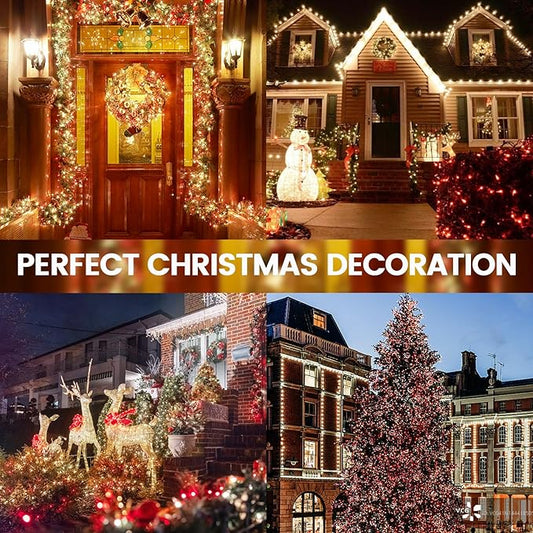 Hezbjiti 403FT 1000LED Color Changing Christmas Lights Outdoor, 11 Modes String Lights IP44 Waterproof Fairy Lights for Party Wedding Tree Decorations (Multicolor to Warm White, Clear Wire)