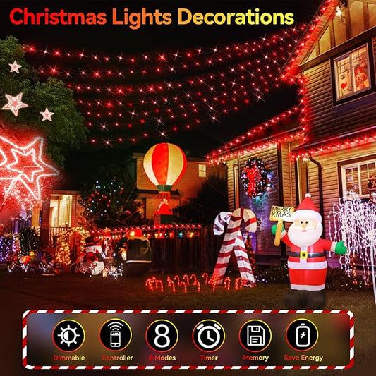 2-Pack Connectable Christmas Lights Outdoor, Total 164FT 400LED Christmas String Lights Waterproof with 8 Modes & Timer, Green Wire Twinkle Lights for Xmas Tree Decorations Outdoor Indoor, Red