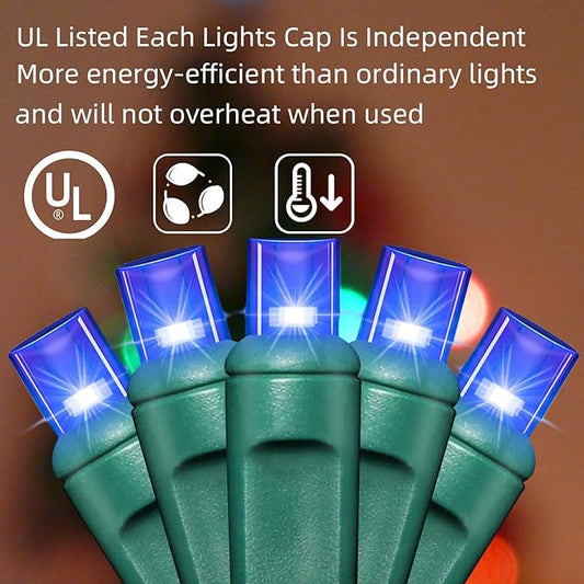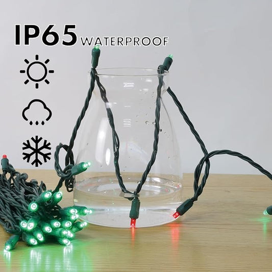 LAMPHOME 50L String Lights, LED Christmas Lights, 6" SPACING,Green Wire, Red and Green