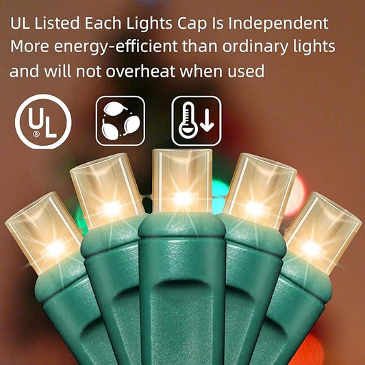 LAMPHOME 50Count String Lights, LED Christmas Lights, 6" SPACING,100% Quickly Twinkle,Green Wire,Warm White,Commercial Grade