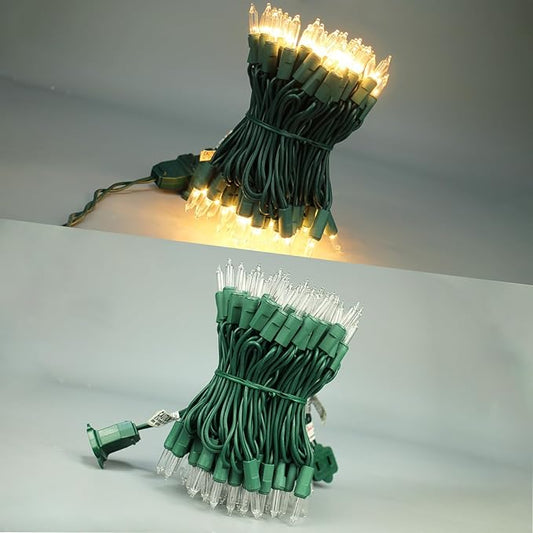 Clear Mini Green Wire Christmas Lights - 100 Count 26.5 ft UL Listed Connectable String Lights for Indoor and Outdoor Use for Xmas Trees Wreath Holiday Garden Decorations (1, Clear)