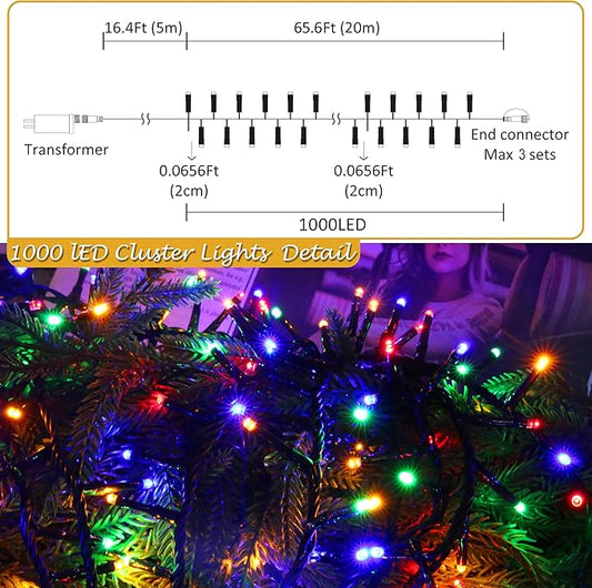 AWQ 1000 LED 82 FT Christmas Cluster Lights, Multi & Warm String Lights Plug in with 11 Modes, Timer & Memory Function Extendable for Indoor Outdoor Wedding Party Christmas Decoration (1000)
