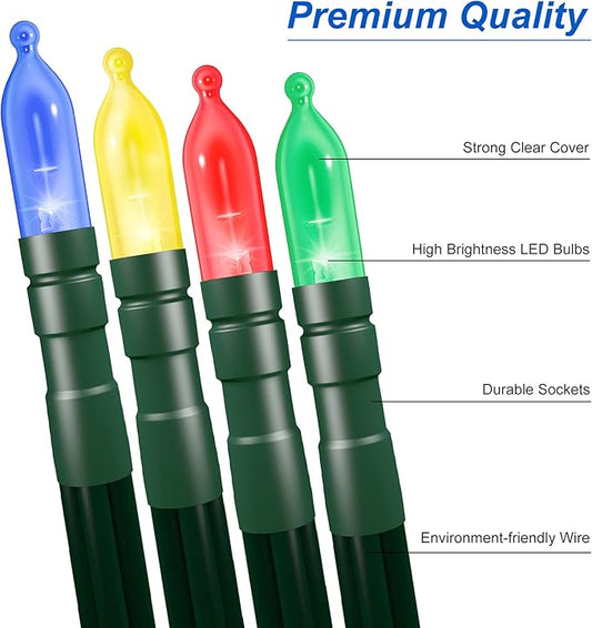 Brightown Multicolor Christmas String Lights, 200-Count 50ft Incandescent Bulb Mini Lights for Indoor Holiday Decor, Christmas Tree Garland Wedding Party Multi-Use Festival Decoration, Green Wire