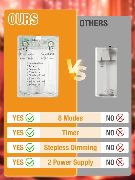 18ft 50 LED Battery Operated Christmas Lights, 8 Modes with Timer - Waterproof for Indoor & Outdoor Decor