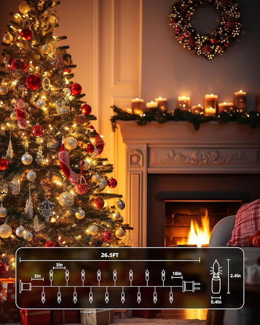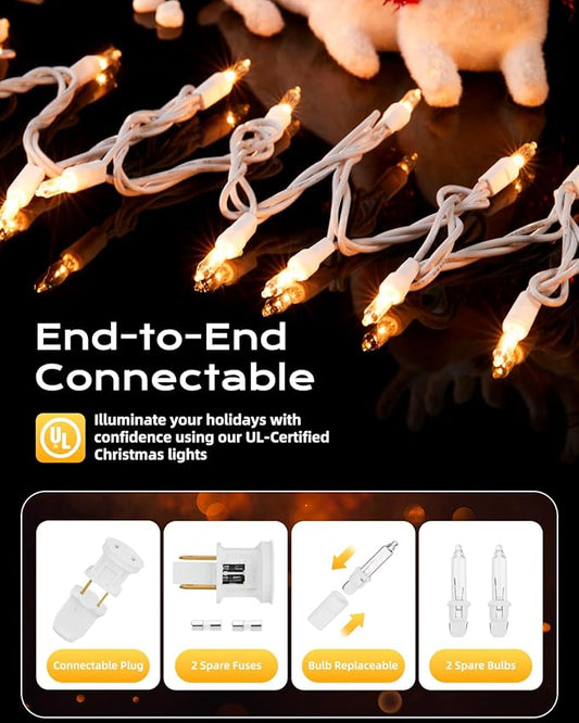 Brightown Christmas Lights, 100-Count 25ft Clear Incandescent Bulb Mini String Lights for Indoor Holiday Decor, Christmas Tree Garland Wedding Party Multi-Use Decoration, White Wire