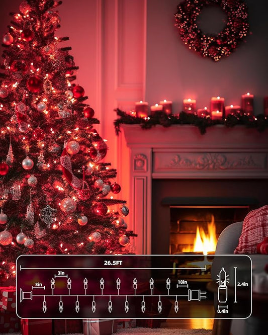 Brightown Red Mini String Lights, 100-Count 26.5ft Incandescent Bulb Valentine's Day Fairy Lights for Indoor Holiday Decoration, Christmas Tree Garland Wedding Party Multi-Use, White Wire