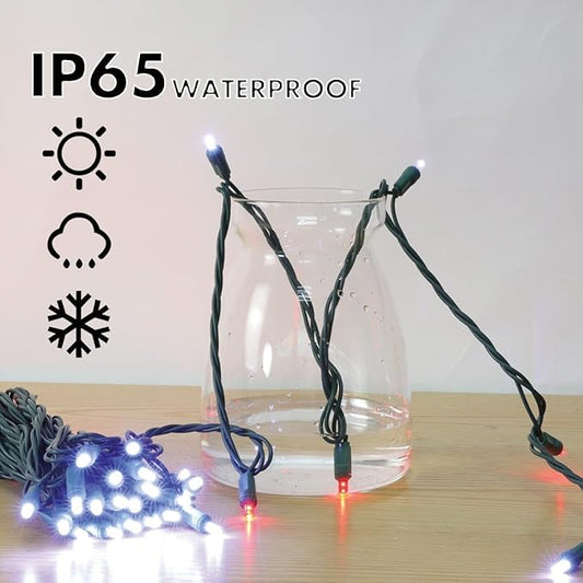 LAMPHOME 50L String Lights, LED Christmas Lights, 6" SPACING,Green Wire, Red and White