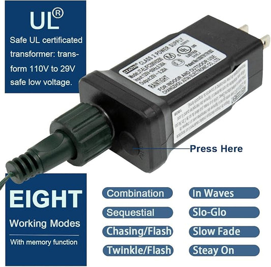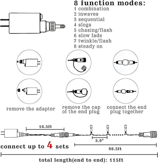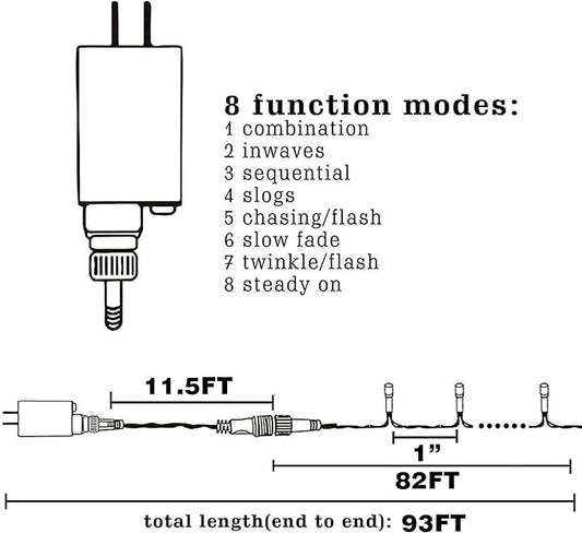 Dazzle Bright 300 LED Christmas String Lights, 100 FT Connectable Waterproof String Lights Green Wire with 8 Modes, Christmas Decorations for Indoor Outdoor Xmas Party Yard Garden (White)