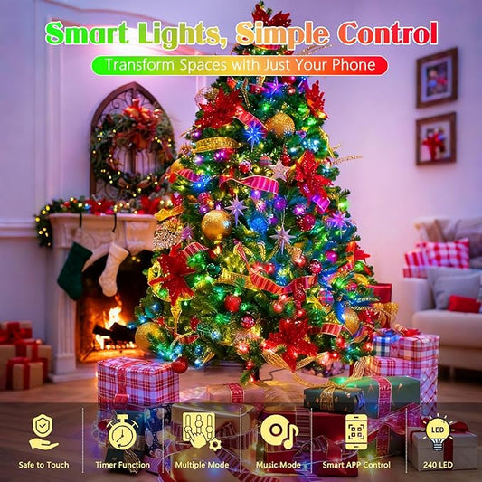 88FT 240LED Smart Color Changing Christmas String Lights Outdoor | App Control RGB LED String Lights with Remote & Timer, Waterproof Twinkle Christmas Tree Lights Indoor for Holiday Xmas Decor