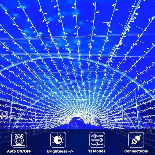 Decute Christmas String Lights Waterproof 300LED 105FT UL Certified with End-to-End Plug 8 Modes, Outdoor Indoor Starry Fairy Lights for Christmas Tree Patio Garden Wedding Party Decor Blue