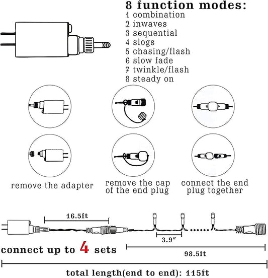 115FT 300LED Warm White Christmas String Fairy Lights Indoor/Outdoor, Waterproof with 8 Modes, Clear Wire Plug in Twinkle Light for Outside Garden Bedroom Christmas Tree Decorations