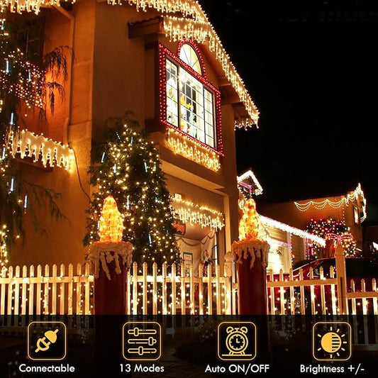 Dazzle Bright Christmas String Lights, Connectable Waterproof String Lights Green Wire with 8 Modes, Christmas Decorations for Indoor Yard Garden (Warm White, 300 LED)