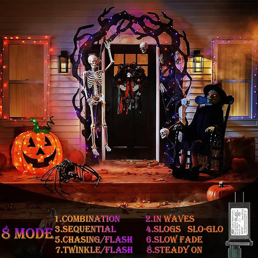 Decute Halloween String Lights Outdoor Indoor Waterproof 300LED 105FT UL Certified with End-to-End Plug 8 Modes, Decoration Lights for Christmas Tree Patio Garden Wedding Party Orange Purple