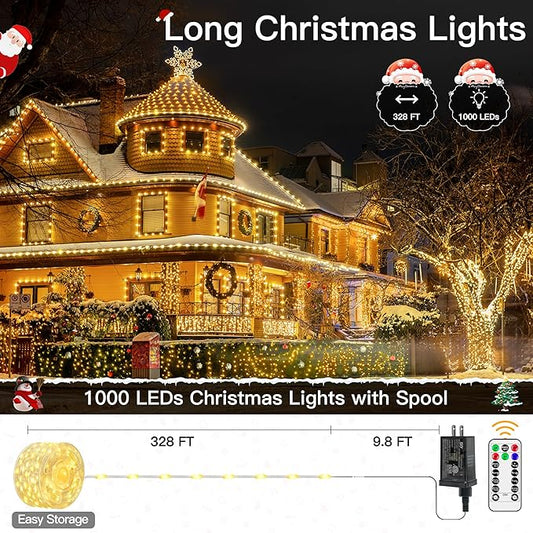1000 LED 328 FT Outdoor Christmas Lights, IP67 Waterproof Twinkle String Lights with Remote 8 Modes and Timer Memory Function, Fairy Light for Holiday Garden Party Decorations(Warm White)