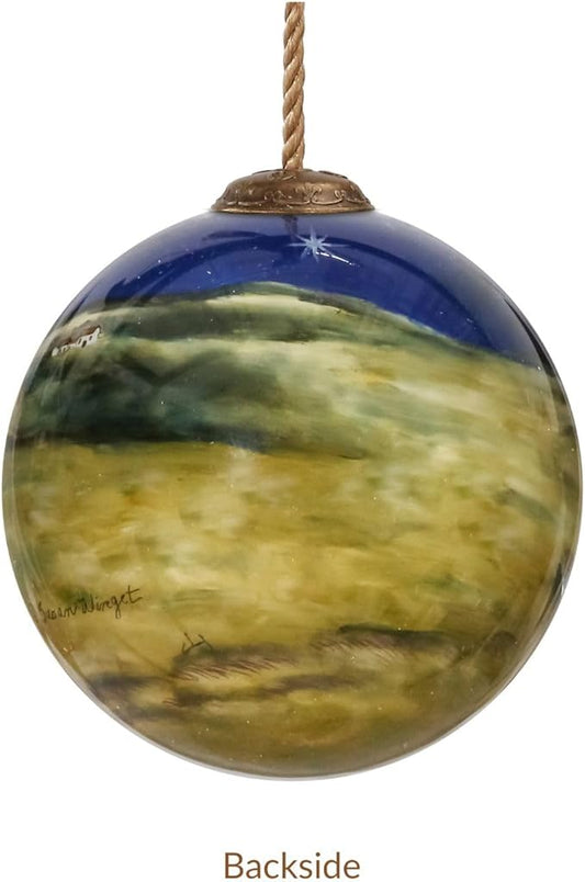 Little Shepherd Boy Nativity Ornament–Hand-Painted Glass Christmas Ornament – Shepherd with Sheep and Star of Bethlehem – Religious Christian Ornament – Catholic Keepsake