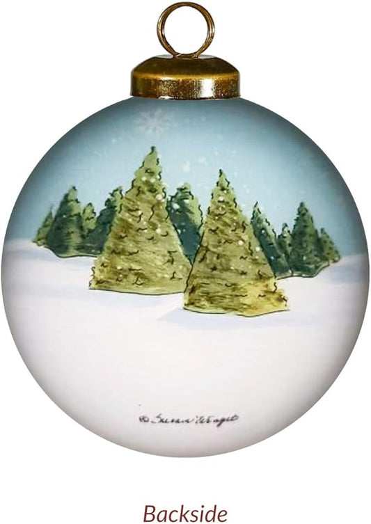 Winter Deer Ornament – Hand-Painted Woodland Buck Scene – Whitetail Glass Deer Christmas Ornament – 3" Round Collectible – Deer Hunting Gift