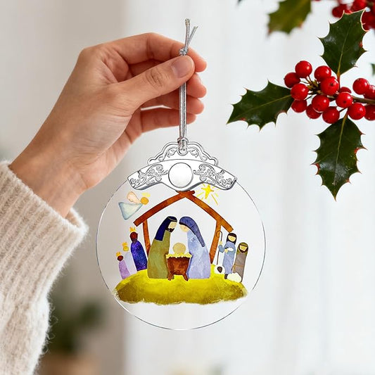 Nativity Christmas Ornament, 3" Stained Glass Christmas Decor, Nativity Ornaments for Christmas Tree, Christian Gifts for Kids, Religious Gifts for Women, Perfect for Holiday Party, Window, Tree