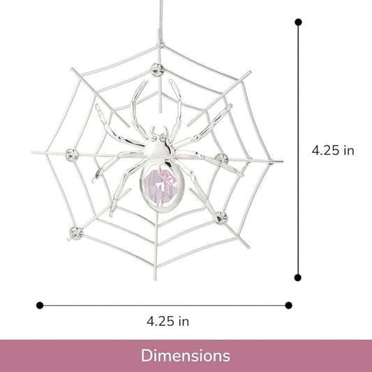 Matashi Silver Plated Christmas Tree Spider Ornament w Pink, Clear Crystals Lucky Hanging Decoration, Holiday Ornament Gift, Unique Spider Decor for Christmas & Halloween Party w Tinsel Legend Story